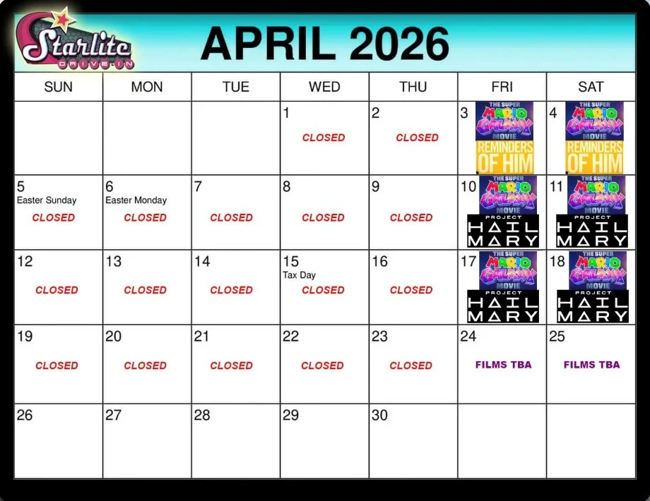 The STARLITE DRIVE-IN is now open FRIDAYS & SATURDAYS in 2026!