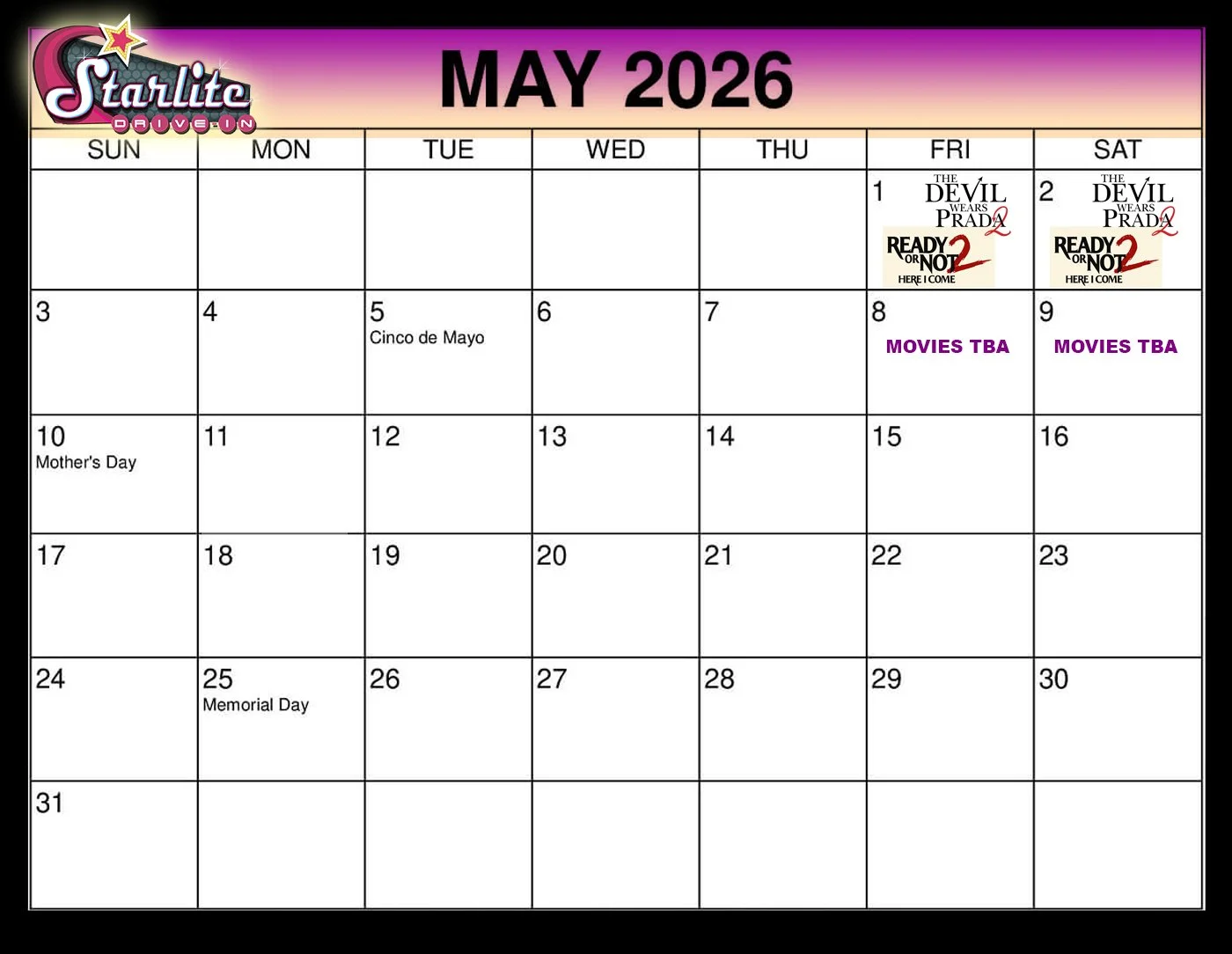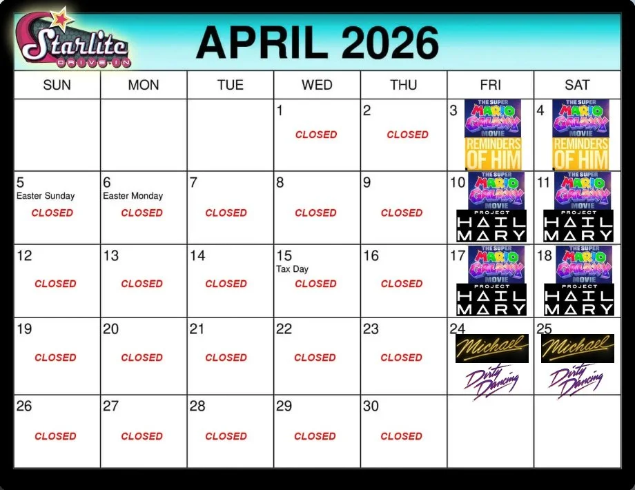 The STARLITE DRIVE-IN is now open FRIDAYS & SATURDAYS in 2026!